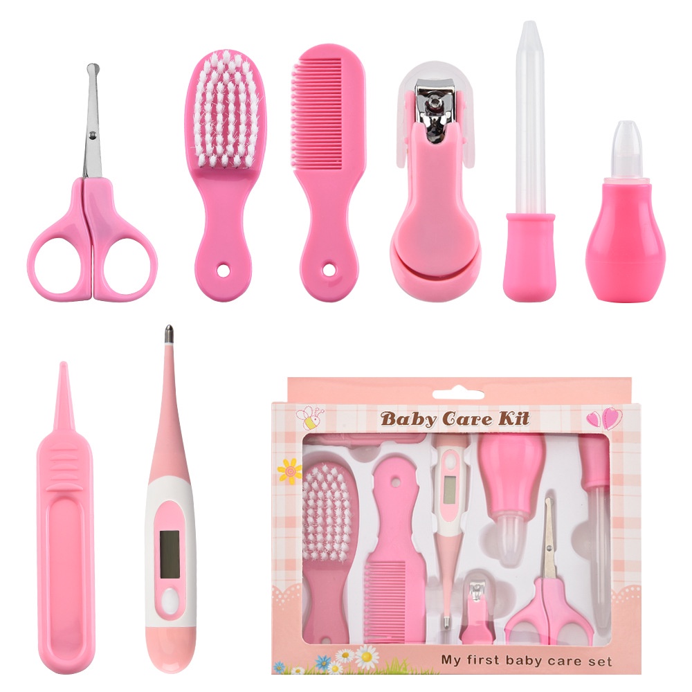 Cuidados Bebê Higiene Kit 8 Peças Pimpolho Infantil Com Bolsa Pente Escova Tesoura e Cortador de Unhas Lixa de Unhas