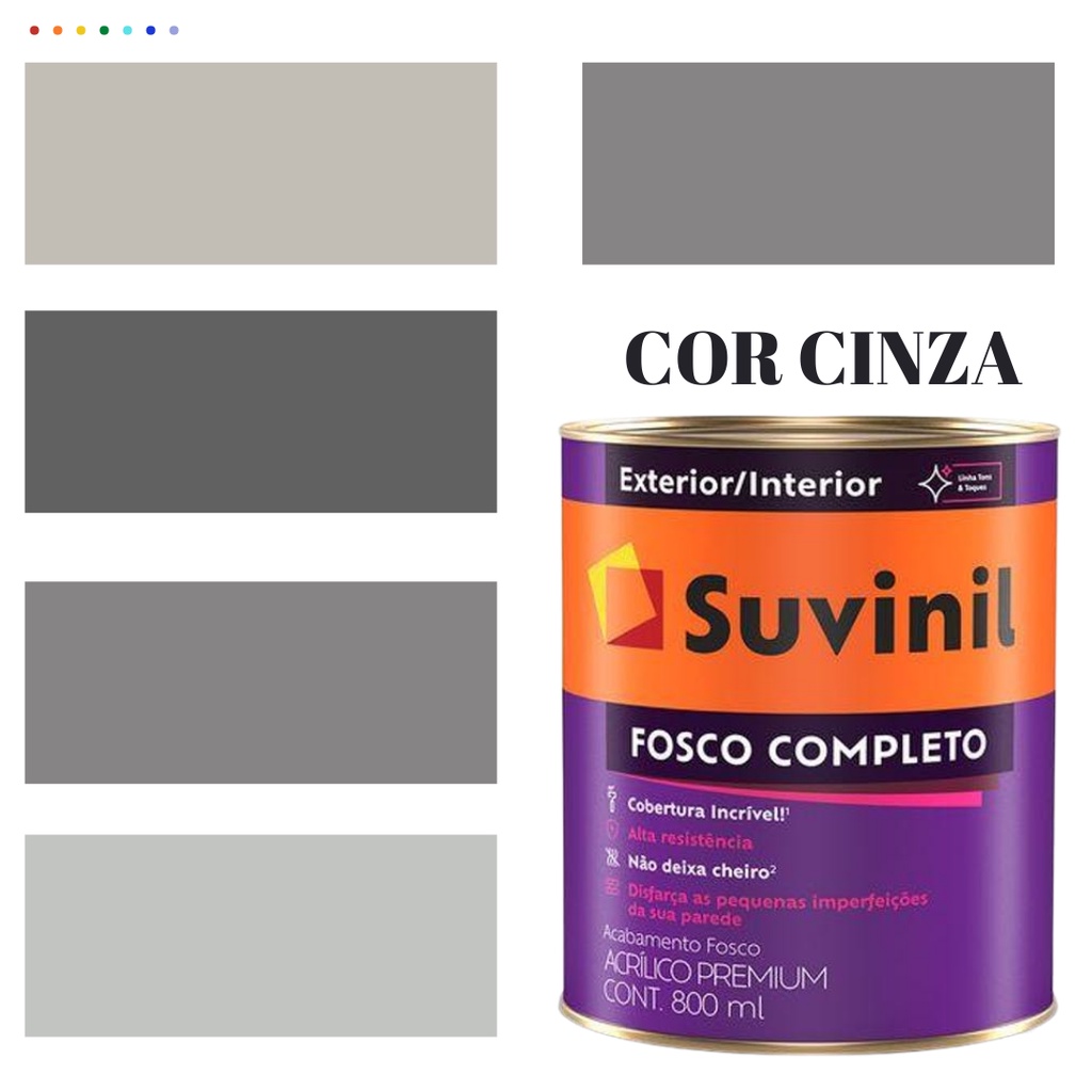 Tinta De Parede Acrílica Suvinil Cor Cinza Fosco Completo Premium Antimofo Lavável 800ml Cor Branco Gelo/Cor Broto De Feijão/Cor Cinza Elefante/Cor Cinza Crômio/Cor Preta