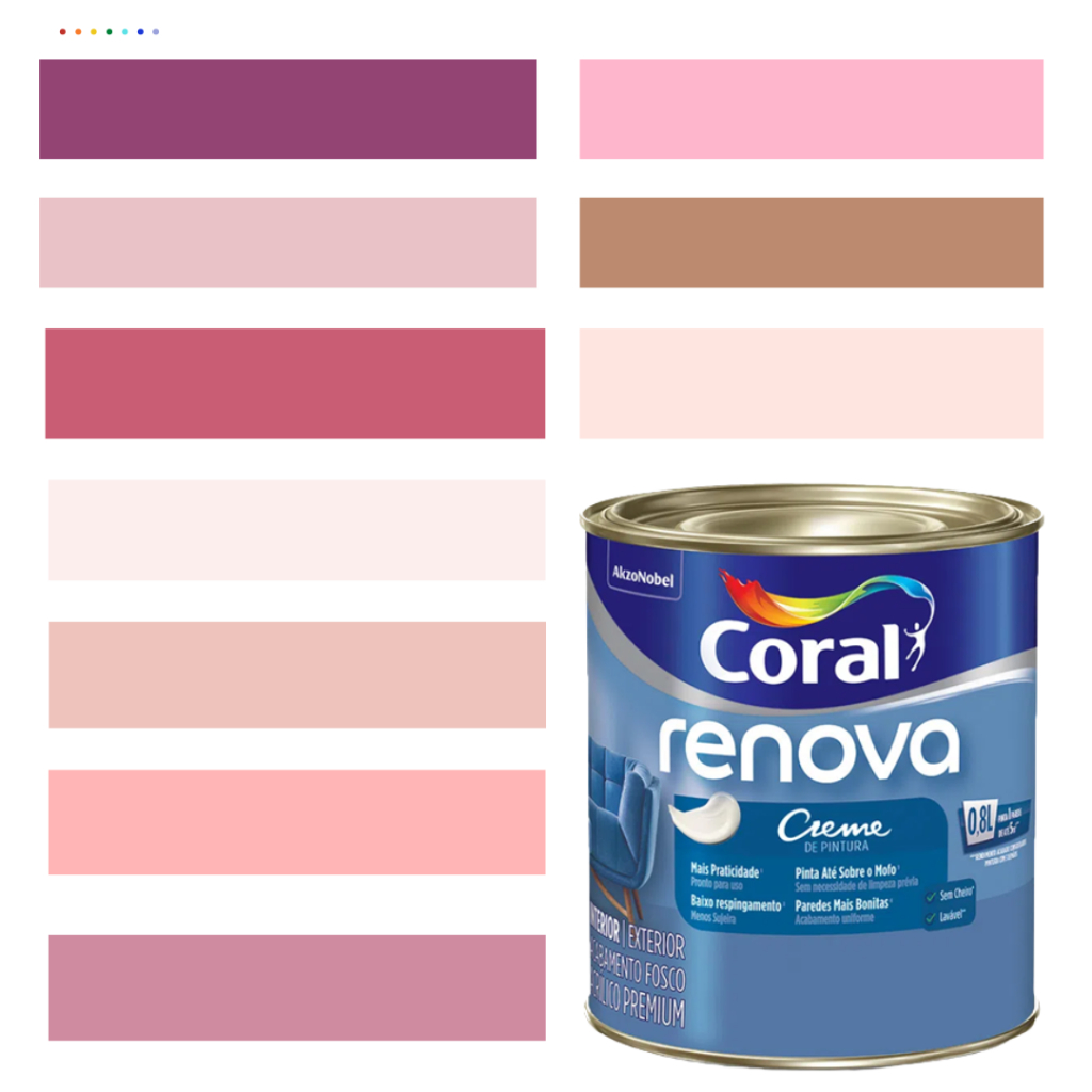 Tinta Rosa Meia Luz de Parede Acrílica Coral Renova Cor Rosa Lavável Premium Antimofo 800ml