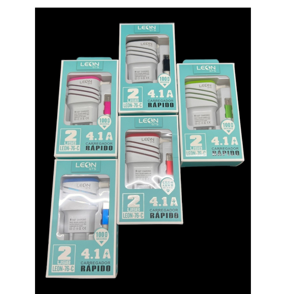 LEON GTS Carregador Celular Android Inteligent 4.1a Micro 2 Usb Turbo COLORIDOS LEON-76-V8