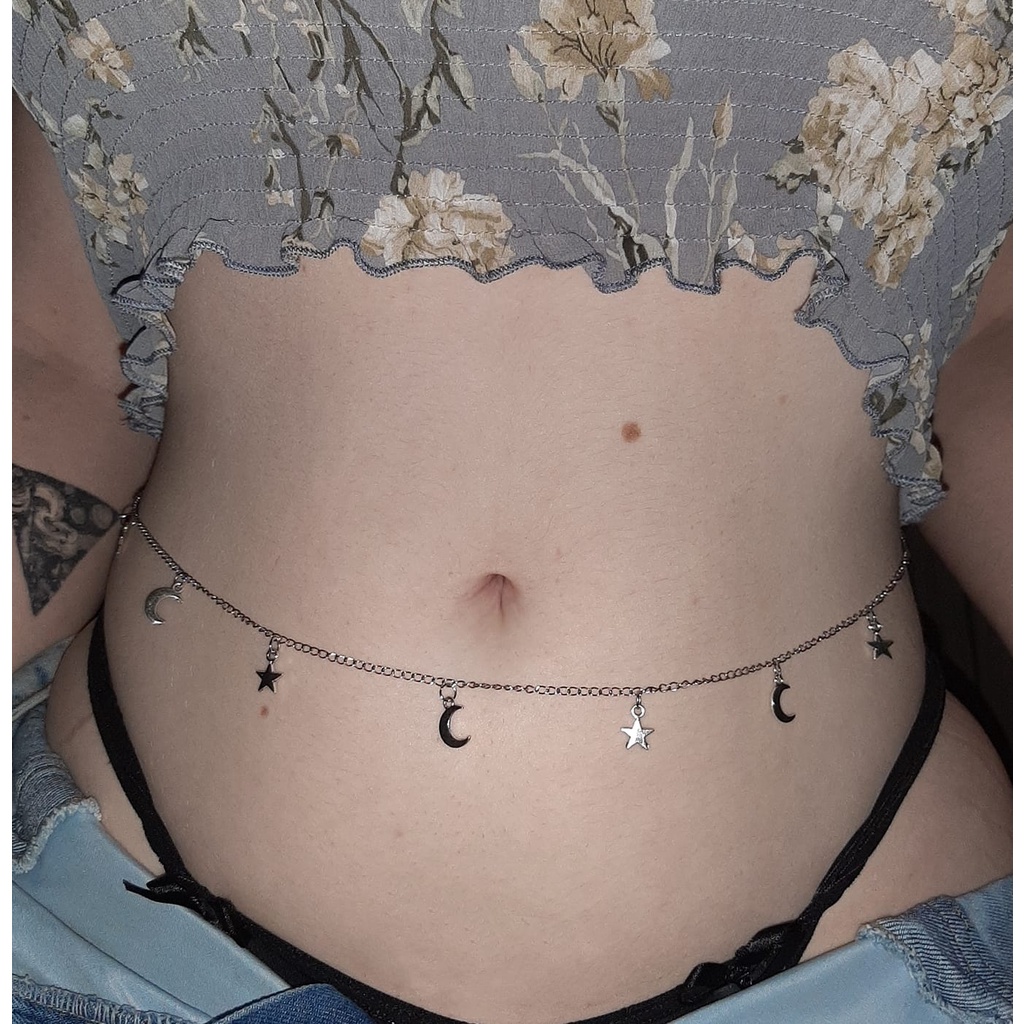 Body Chain de Cintura Aço Inoxidável com Lua e Estrela Corrente Corporal