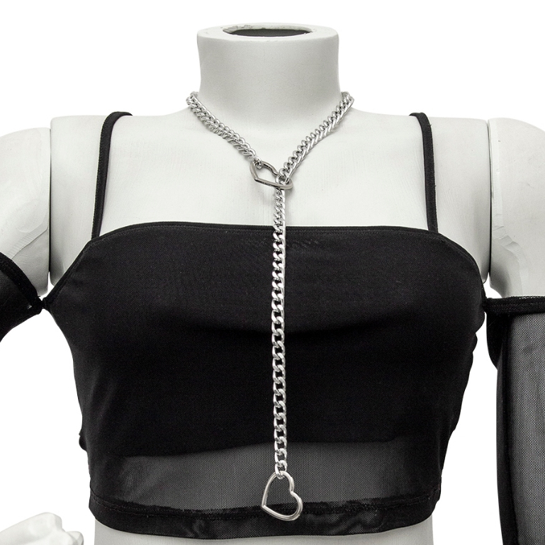 Gravatinha Slip Body Chain de Puxar Corrente Reforçado ou Delicado Gótico BDSM Prateado Feminina