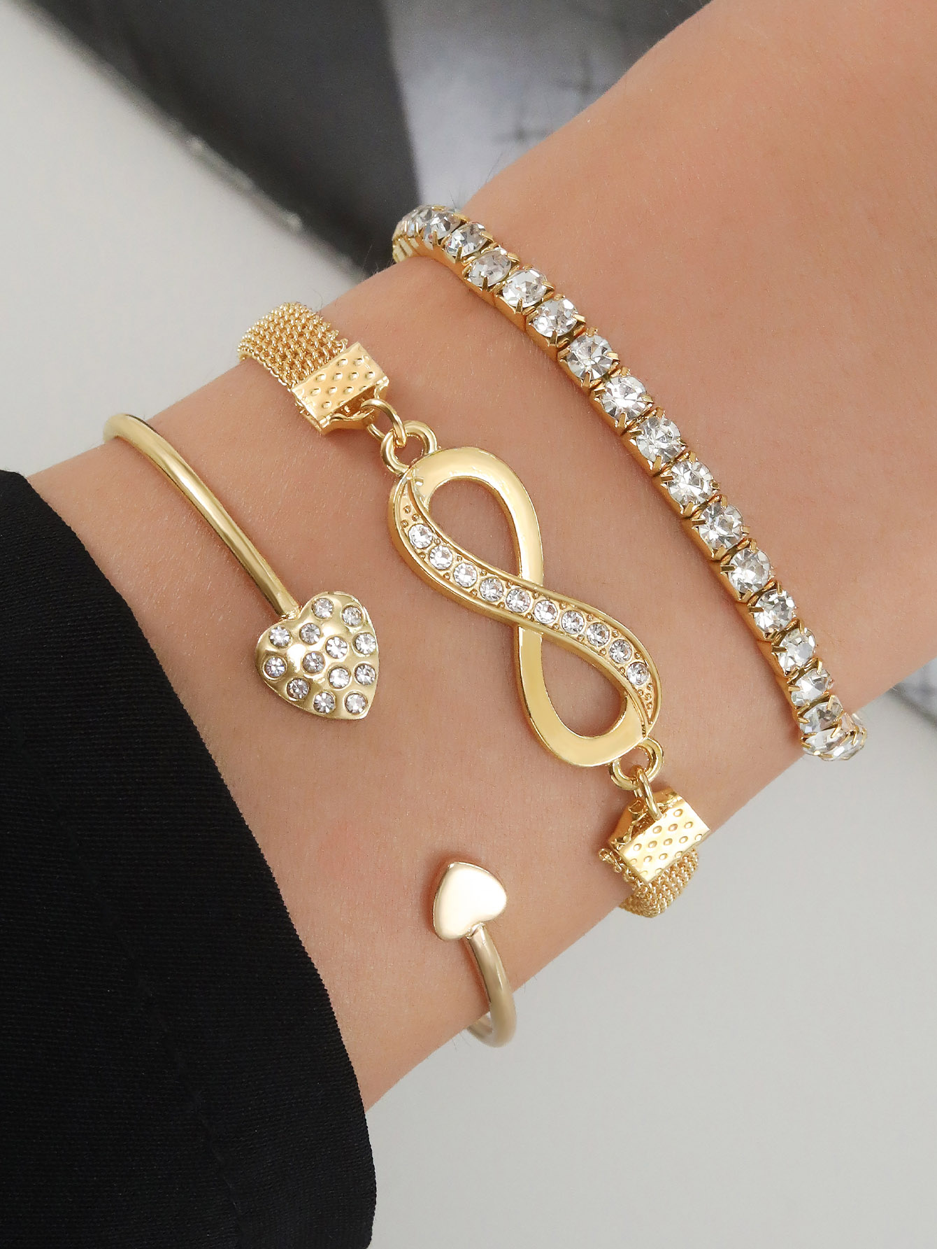 Corrente de Cobra Fashion Snake Chain com Diamantes Pulseira de 8 caracteres Pulseira de 3 peças Pulseira de senhora