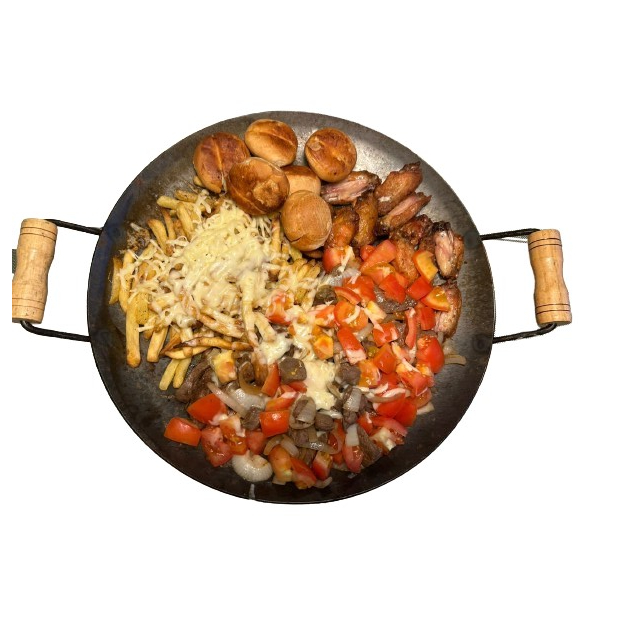 DISCO DE ARADO CHAPA COM ALÇAS DE MADEIRA PARA CHURRASCO NO FOGÃO PARA CARNES, LEGUMES, ARROZ CARRETEIRO E PAELLA
