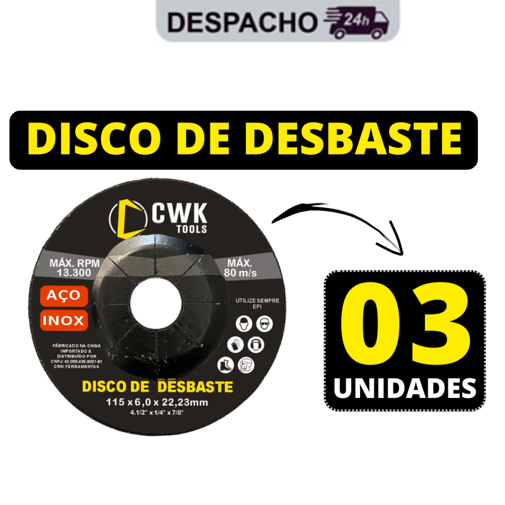 Kit 03 Disco de Desbaste para Aço Ferro 4" (4.1/2 x 1/4 x 7/8)