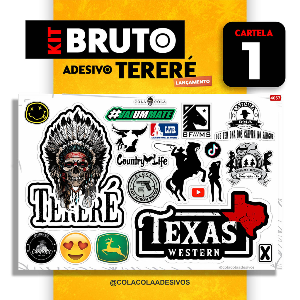 Adesivos Tereré Agro Country 153 Unid (Kit Bruto 9 CARTELAS) para garrafa de terere bike carro moto notbook