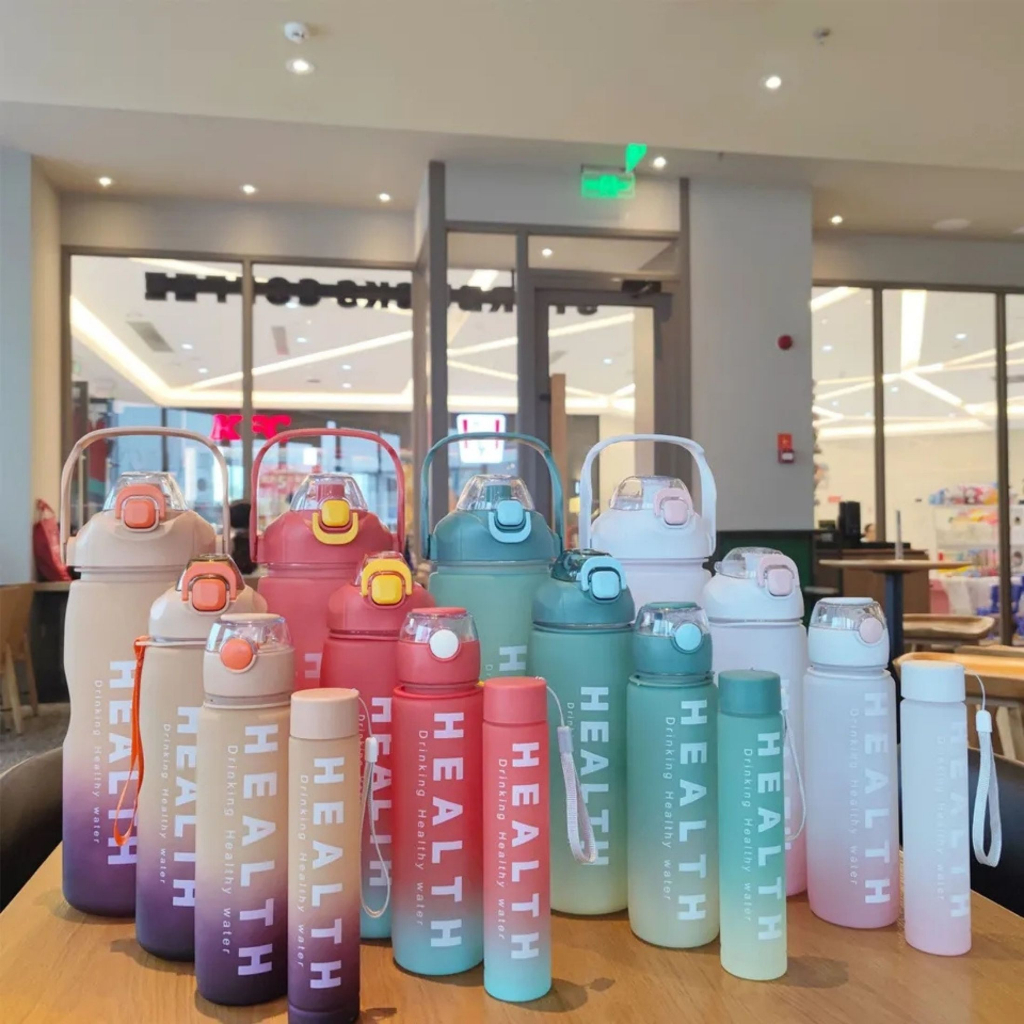 Garrafa de Água Squeeze Kit 4 em 1de Água Health Squeeze 4 pc De Água com marcador tempo - 300ML+700ML+1500ML+3300ML Lindissimas a Pronta Entrega Garrafa De Água De Marcador De Tempo Esportiva À Prova De Vazamentos copo caneca Para Acampamento Academia