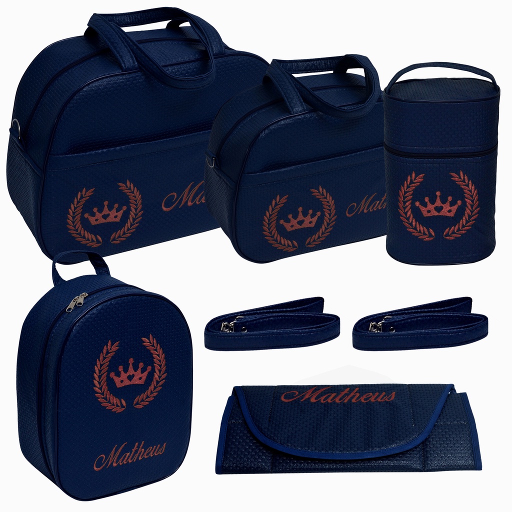 Kit Bolsa Maternidade Personalizado Menino/Masculino Azul Escuro Coroa 5 peças Com Nome