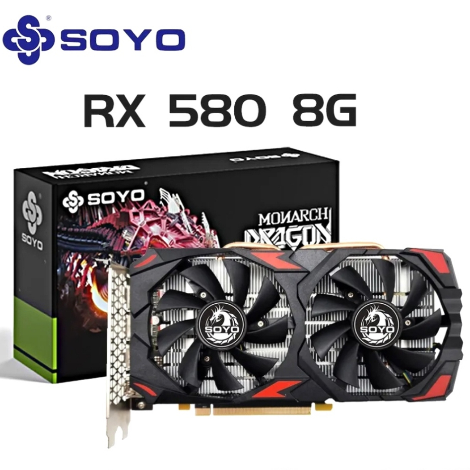 Placa Gráfica De Vídeo SOYO AMD RX 580 8GB 2048SP Para Jogos GDDR5 256bit GPU rx580 8g Desktop Video Office 580Rx