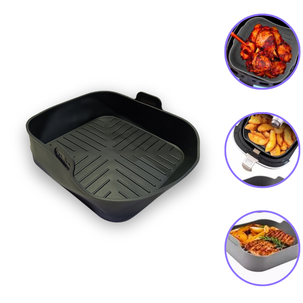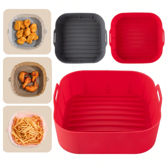 Bandeja Forma Cesta De Silicone Para Airfryer 20,5x20,5x7 Quadrada Redonda