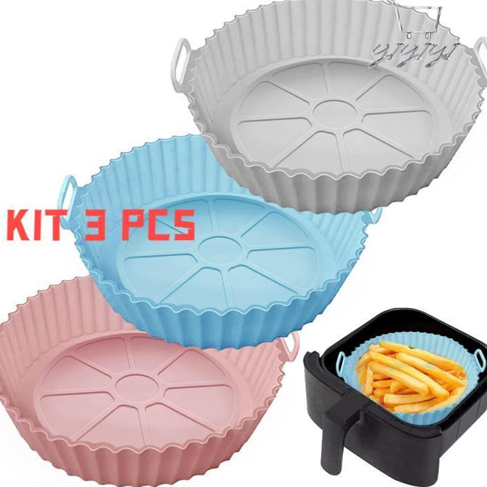 Kit 3 pcs Bandeja forma de assadeira para air frier silicone flexível lavável reciclável redonda forma para airfryer