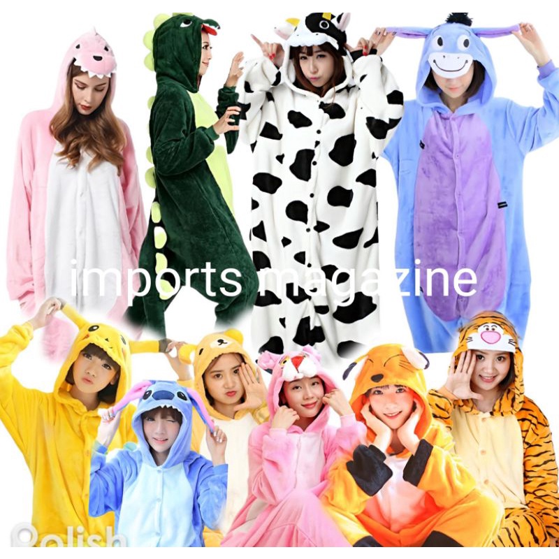 Macacão Adulto Dinossauro Pikachu Vaca tigrão Vaquinha Kigurumi Cosplay Pijama fantasia Stich ohana