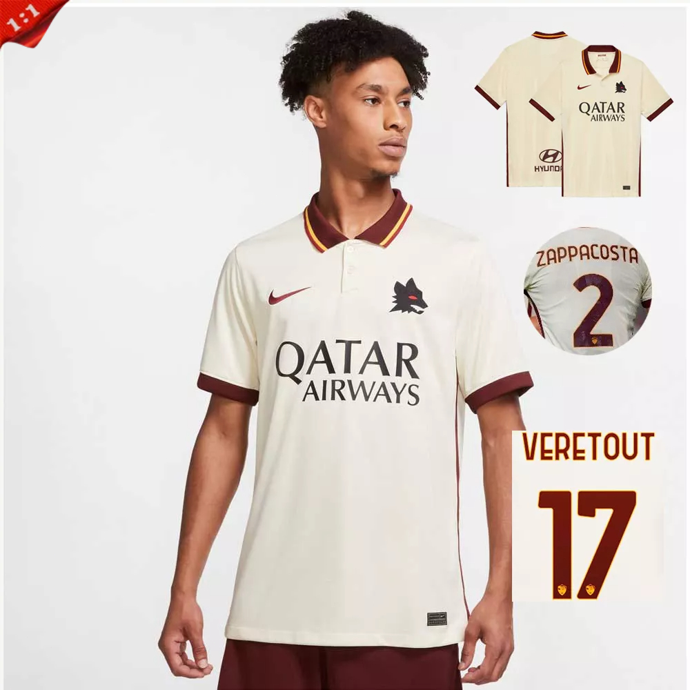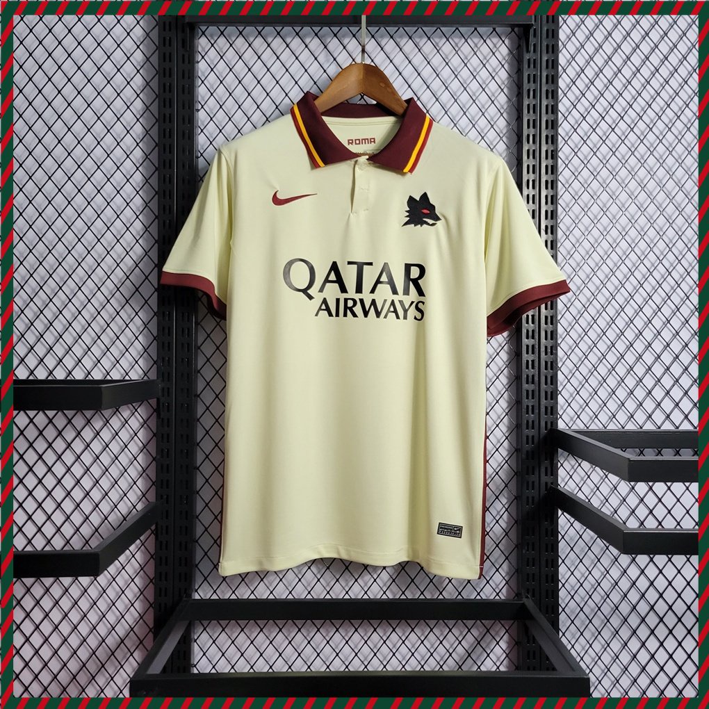 Roma Camisa De Futebol II Longe 20/21 Beige POLO Masculina Camiseta Esportiva Tamanho Personalizado : S-2XL