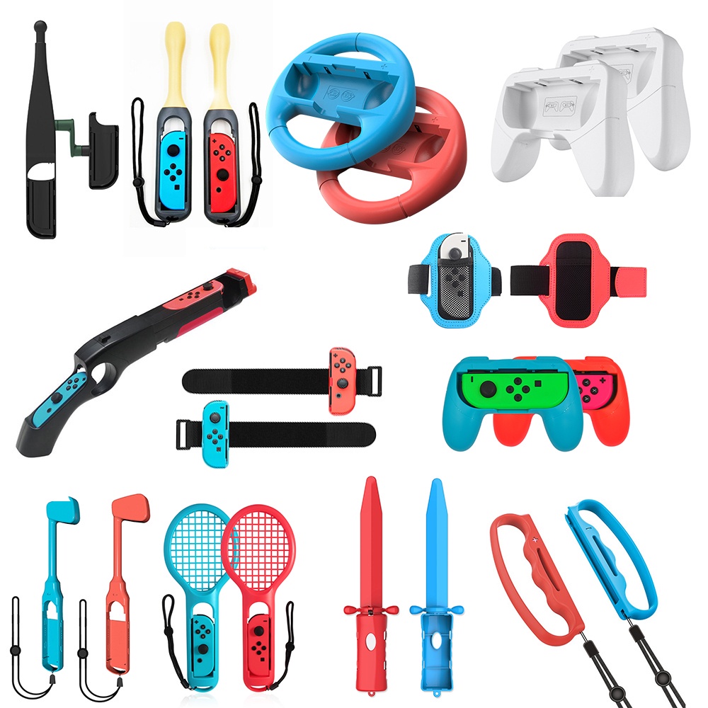 VGTIME Switch Acessórios De Jogo Com Volante/Cabeça De Pesca Pólo De Haste/Barra De Dança Bateria/Espada De Esqui Compatível OLED Nintend