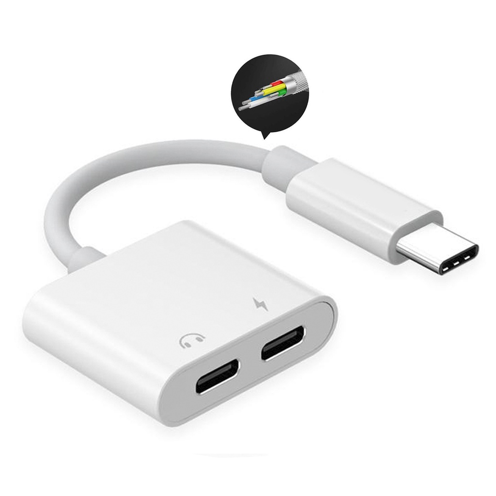 UQ Fone De Ouvido 2 Em 1 Tipo C Adaptador De Áudio De Porta Dupla Para Conector De 3,5mm Acessórios Do Carregador Xiaomi Huawei