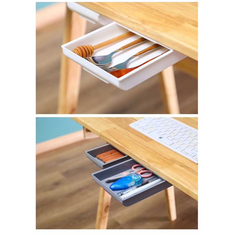 sob a mesa sendo gaveta organizadora retangular,com adesivo Multifuncional, papelaria, armazenamento de utensílios 2 gavetas/Gaveta Adesiva Escondida Gaveta Porta Treco Organizadora