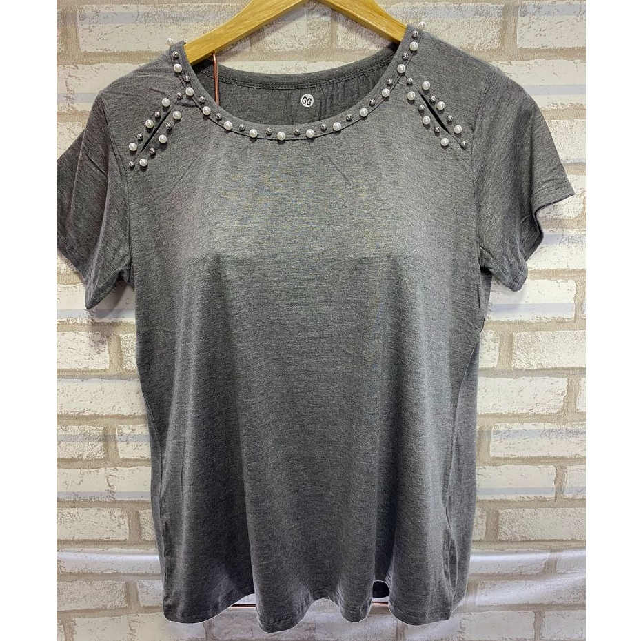 Blusa Blusinha Feminina Plus Size Mullet Long Line Manga Curta COM PEDRARIA FEMININA