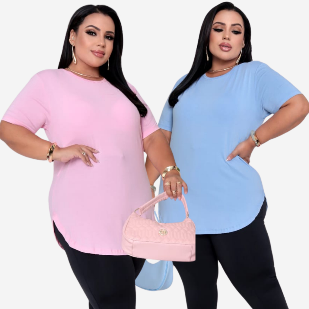 Blusa Blusinha Feminina Plus Size Kit 2 Blusas Mullet Long Line Manga Curta 1126