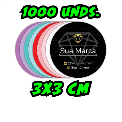 1000 ou 500 Adesivos Etiquetas Rótulos 3x3 cm Personalizados com a sua Logo ou Arte com Corte