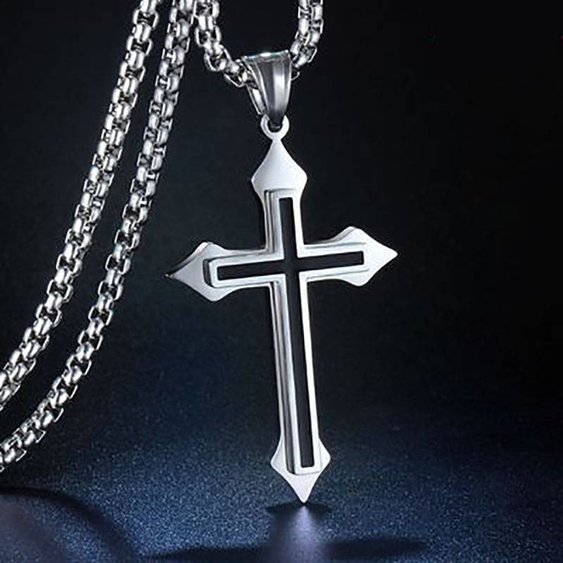 Colar E Cordão Estilo retro Com Pingente Em Cruz De Aço Inoxidável