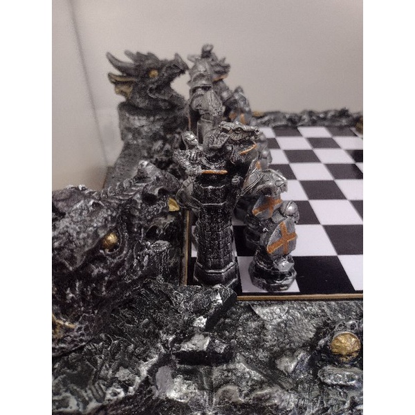 jogo de xadrez temático medieval mod 3 tabuleiro resina