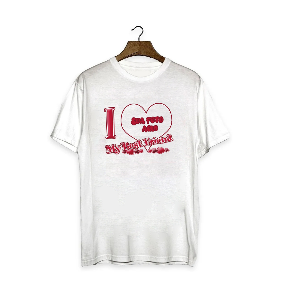 Camisa Personalizada com Foto Coração I LOVE MY BEST FRIEND - Eu amo meu melhor amigo ou Eu amo minha melhor amiga
