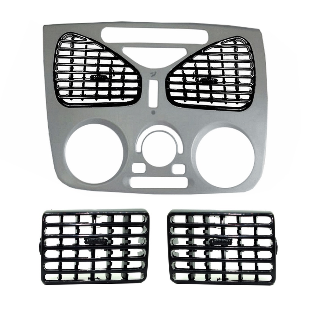 Kit Moldura Painel Central Palio C/ Ar Condicionado + Moldura Radio + 2 Difusores de Ar Palio Cinza