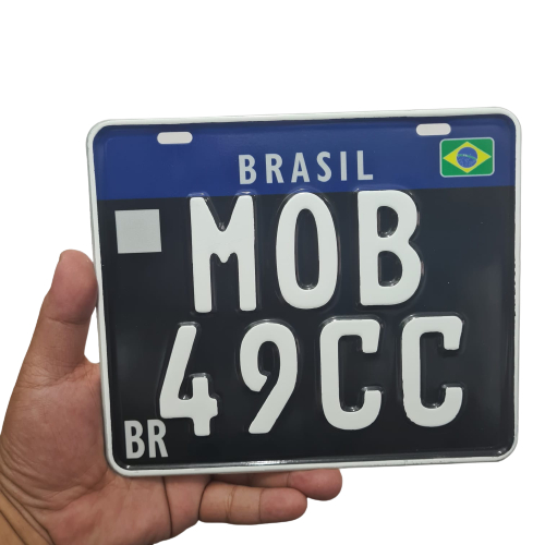 Placa Moto 49cc Decorativa Ciclomotor 50cc Motorizada Mob 49cc Placa colecionador preta Mobilete Jog Bike