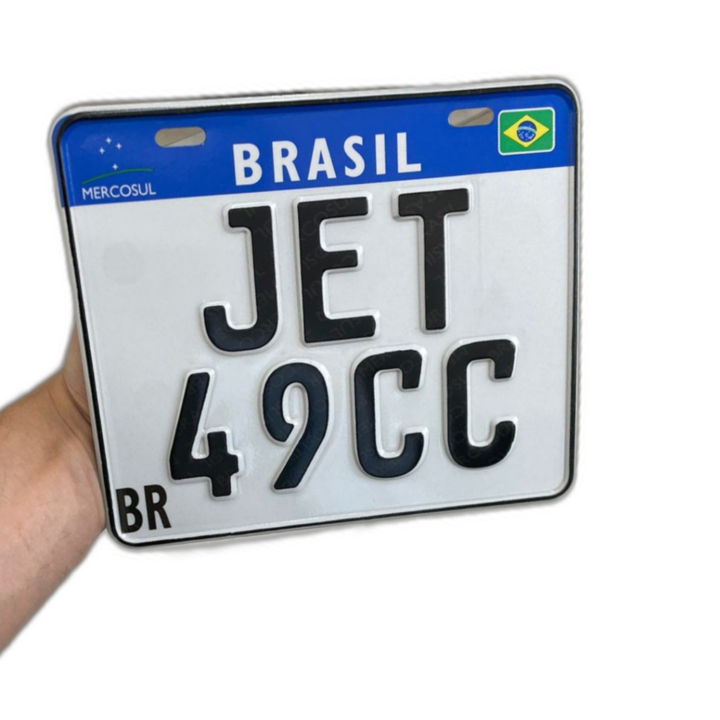 Placa de Moto Decorativa 'Jet 49cc' Em Alumínio E Alto Relevo Padrão Mercosul