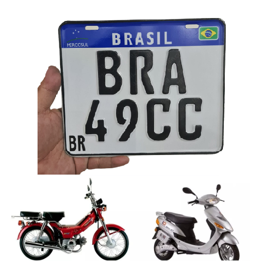 Placa Moto 49cc Decorativa Ciclomotor 50cc Motorizada Bra 49cc Placa colecionador preta Mobilete Jog Bike