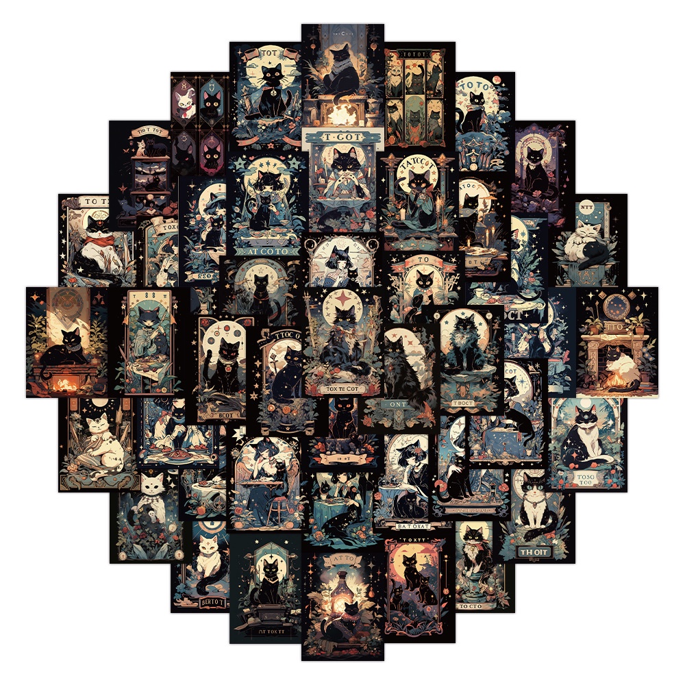 60PCS Cartões De Tarô De Gato Escuro Originais Adesivos De Grafite Para Capacete De Bicicleta Decalques De Lápis De Mão LanLanStickersWorld