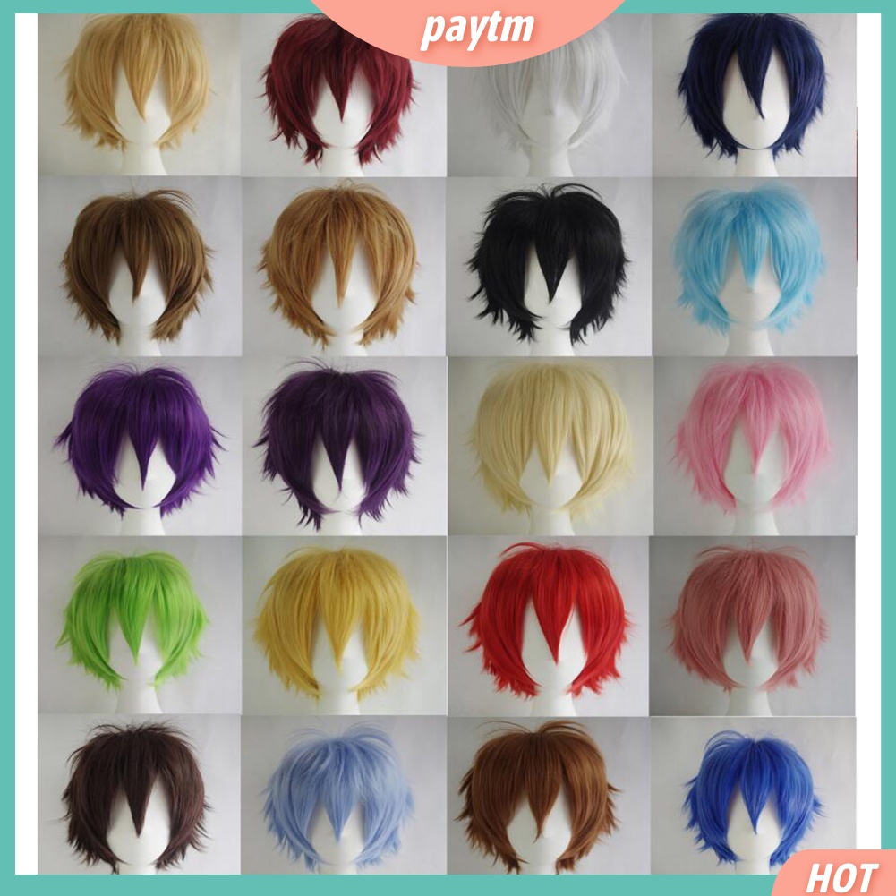 Peruca Curta Liso Para Homens [PTM] Mulheres Multicores Pedaço Curto Completa Festa De Anime Cosplay