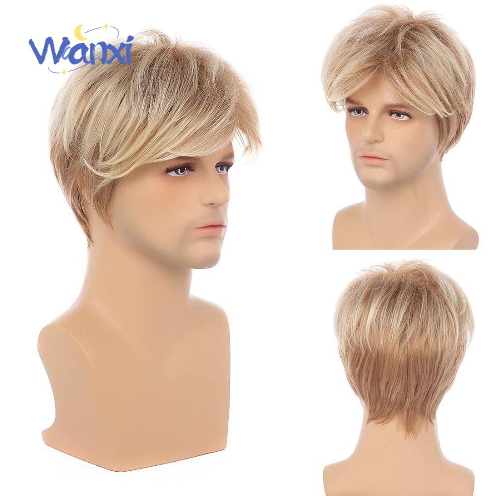 WANXI peruca loira peruca masculina perucas Homens Peruca Curta Cabeleira Loira Sintética