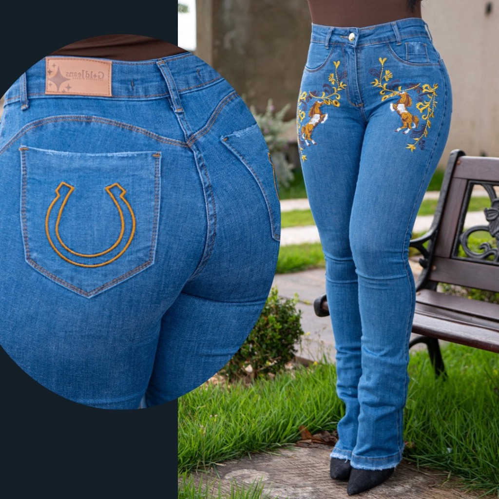 Calça Country de Rodeio Feminina Cintura Alta Com Lycra Elastano Empina Bumbum Estilo Sertanejo Pecuária
