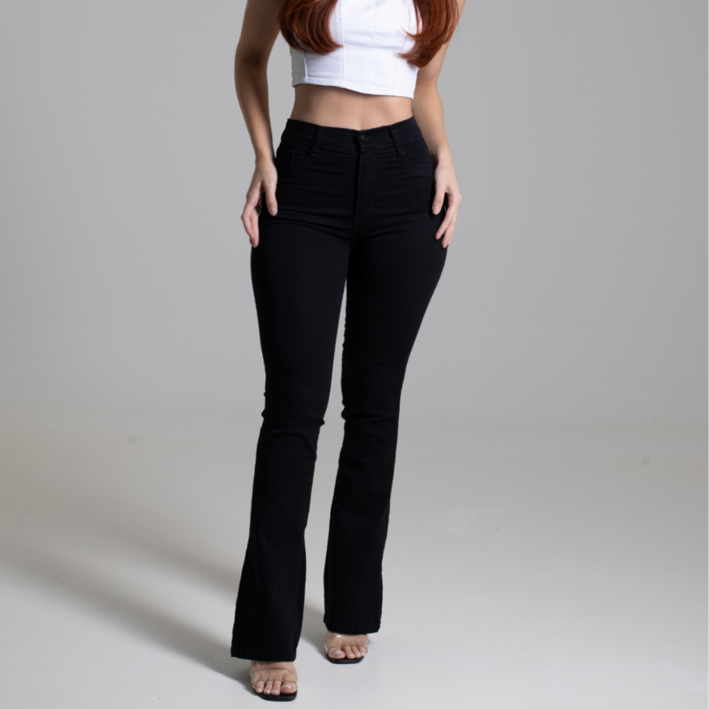 Calça Feminina Sawary Boot Cut Flare Cintura Alta Boca de Sino Elastano Confortável Lycra Original