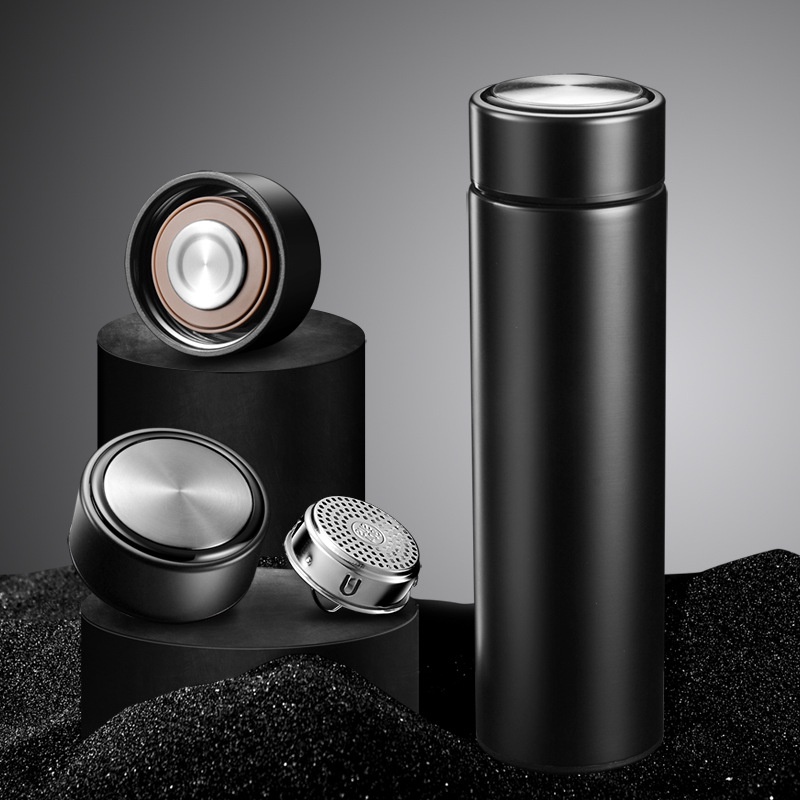 Garrafa Térmica com Termômetro Digital em Aço Inox 500ml com Suporte de Chá