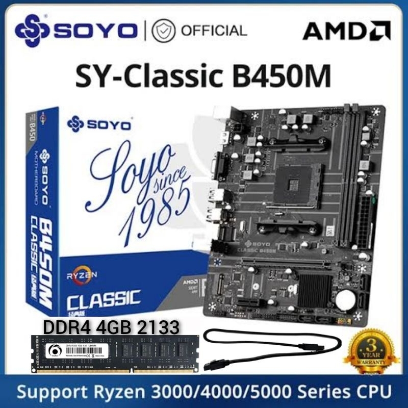 Placa-mãe clássica original B450M, Soyo AM4, suporta CPU Ryzen 5, 5500, 5600G, Dual-Channel, DDR4, M.2, NVME, M-ATX + Memória Ram 4GB