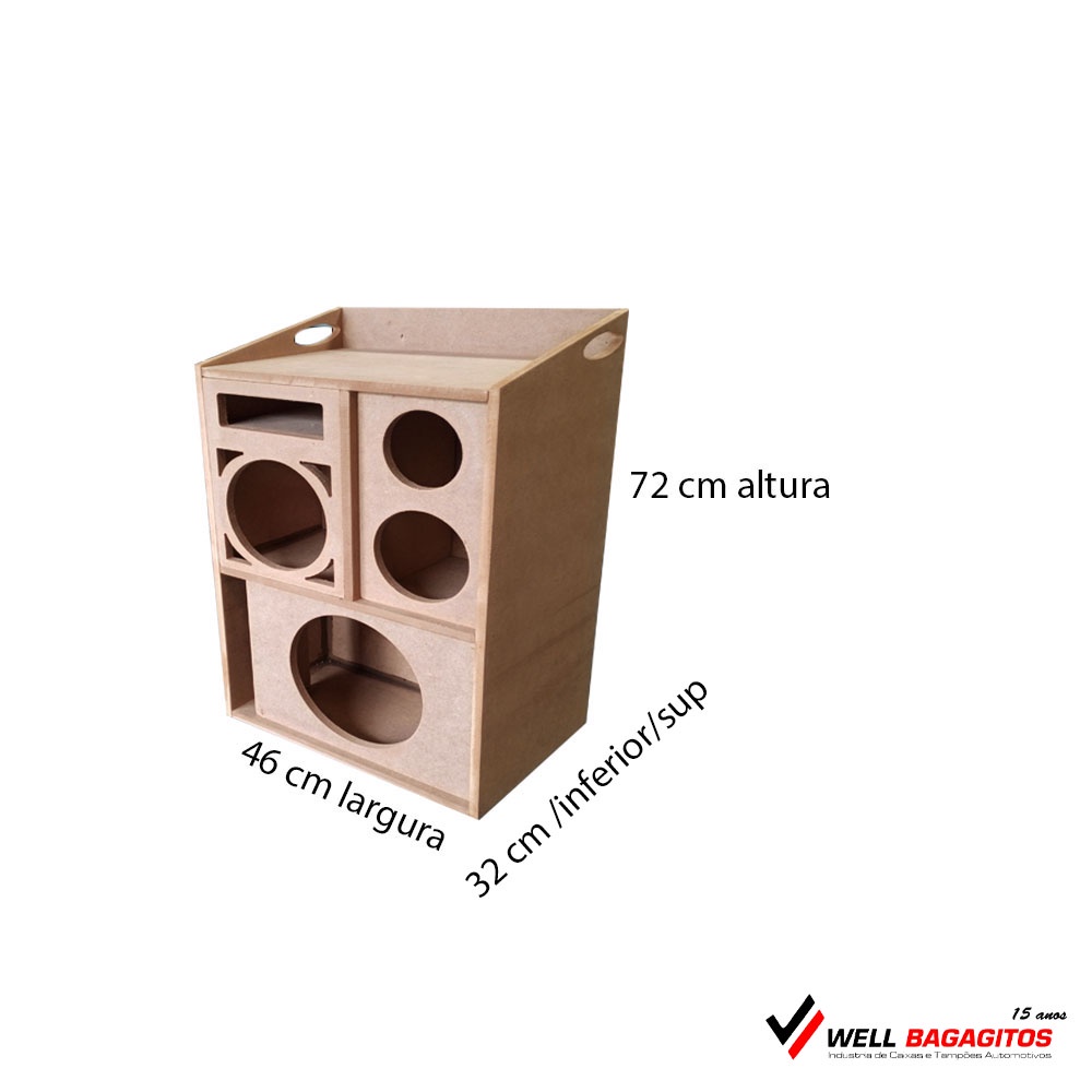 Caixa Bob Vazia P/Alto Falante de 12 (SubWoofer) + 1 Tweeter + 1 Driver + 1 Player C/ Duto de 3 Polegadas