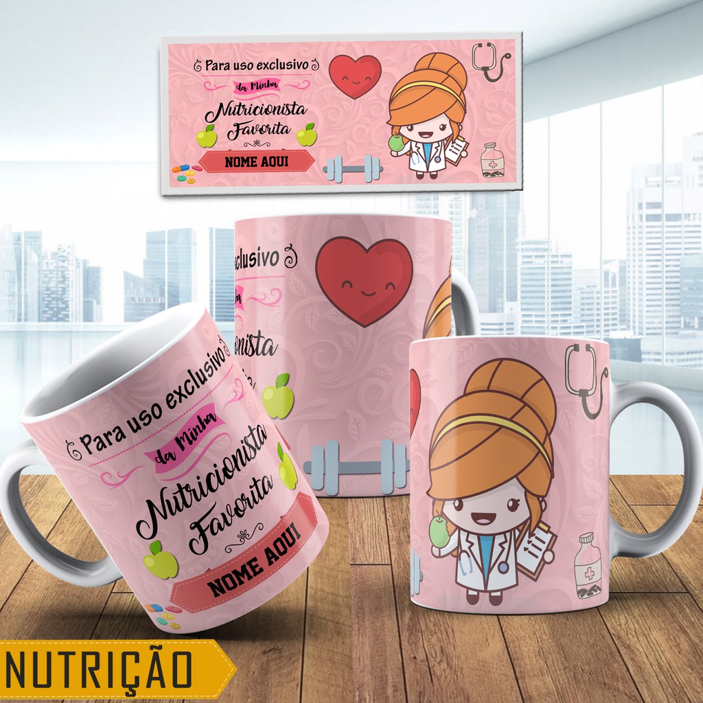 Caneca Personalizada Nutricionista Nutrição Com Nome - 325ml