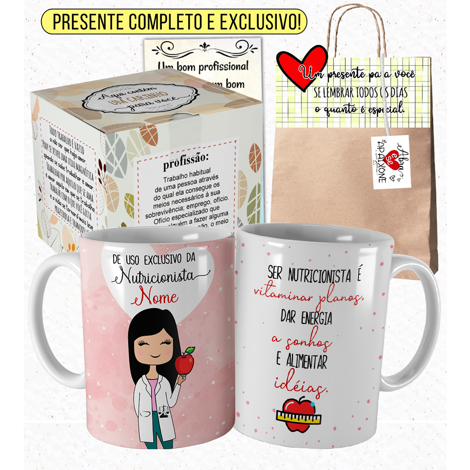 Caneca Nutrição Nutricionista Morena Personalizada com Nome e Embalagem Presenteável