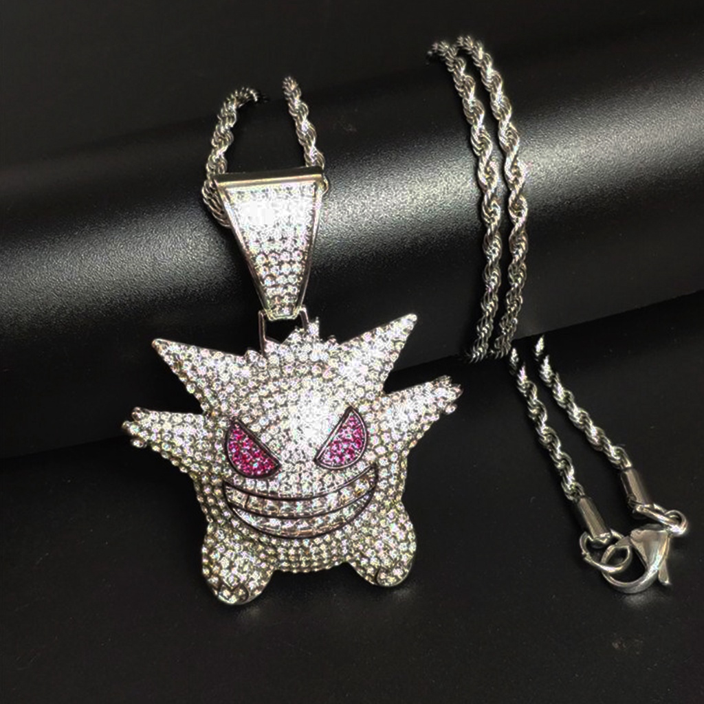 Cordão Colar Cravejado Gengar Corrente Ice Trap Mc Prateado