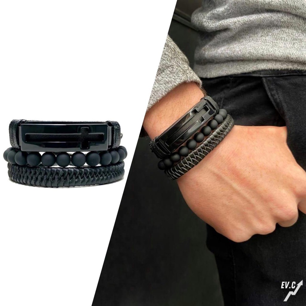 Combo Pulseiras Masculinas Kit 2 Unidades Pulseira Bracelete Preto Fosco Envio Rápido e Seguro Qualidade