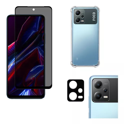 Kit Para Xiaomi Poco X5 5G Película Privacidade + Capa Capinha Anti Shock+Pelicula Camera 3D