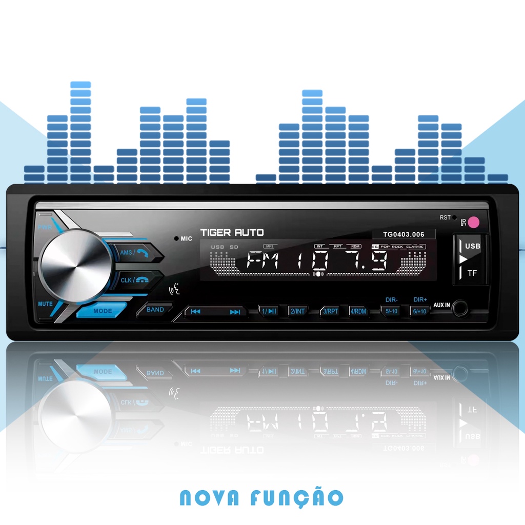 Rádio Automotivo Tipo Pioneer Bluetooth Comando de Voz USB Som Mp3 Tiger Radio Tg-4.3.006 SD