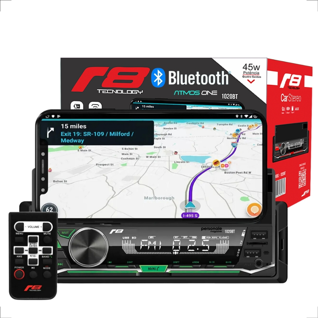 Som Automotivo Rádio De Carro Bluetooth R8 1020BT Tipo Pioneer USB SD FM Potente C/Controle Remoto