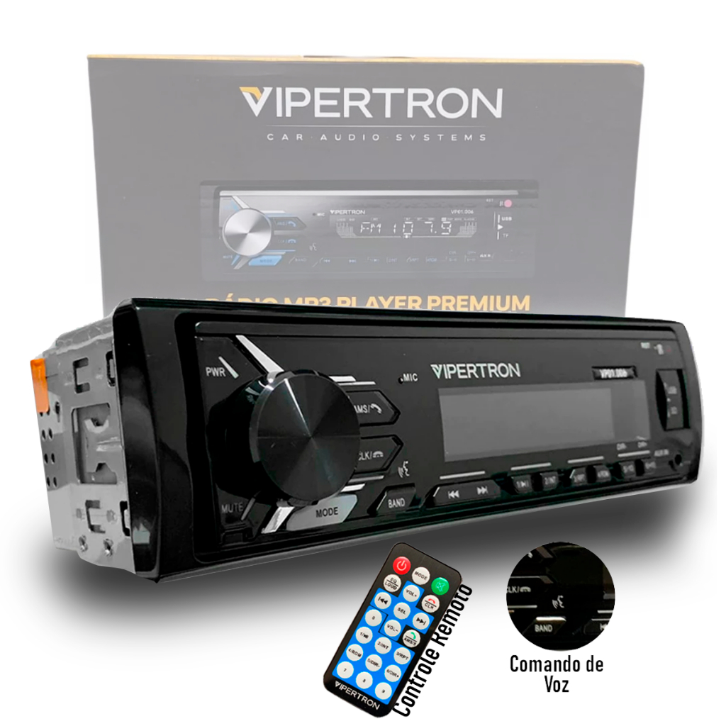 Rádio Automotivo Tipo Pioneer Comando de Voz USB Bluetooth Som Mp3 Vipertron Radio VP01.006 by Tiger