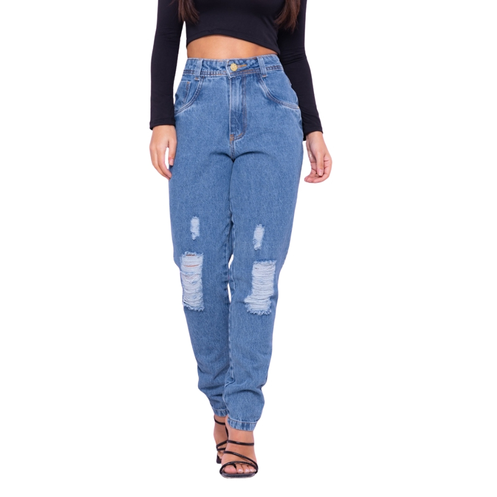 Calça Mom Jeans Feminina Destroyed Cintura Alta, barato, preço de atacado