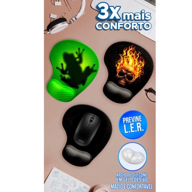 Mouse pad com apoio silicone em gel coesivo para descanso de punho MP-AU2319A