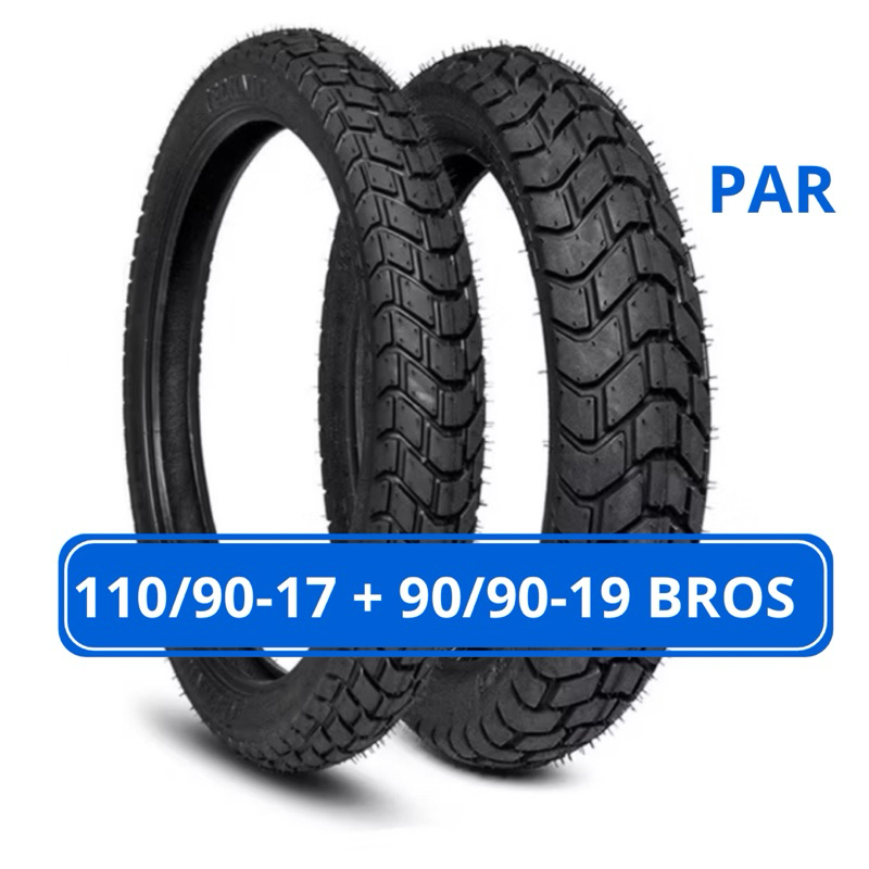 PAR DE PNEUS MOTO BROS 125/150/160 XTZ 150 CROSSER, XRE 190, FLY 125 E DEMAIS 110/90-17 + 90/90-19 CROSS PARA TRILHA.