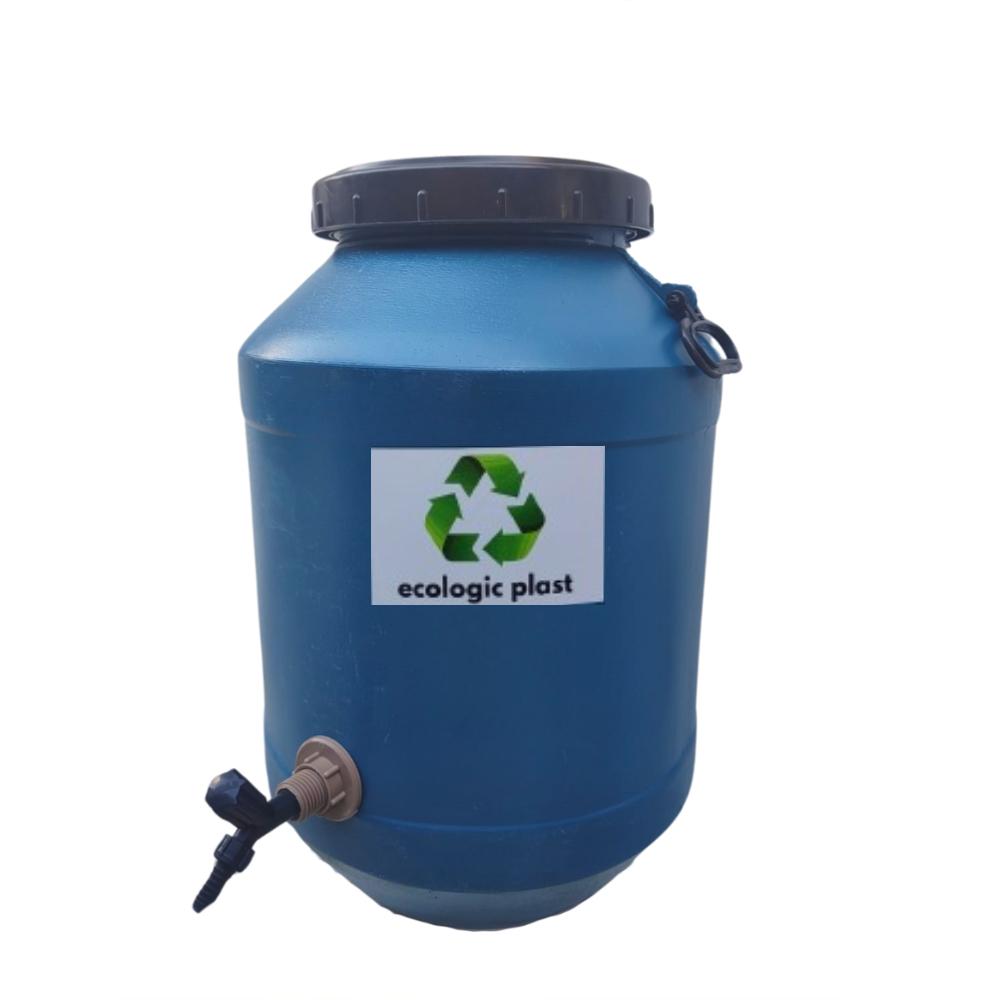 Bombona/ Barrica/ Tonel/ Tambor 50 litros com torneira e balde, recipiente para armazenar água da chuva e da máquina